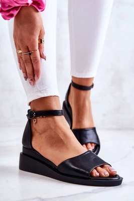 Zamszowe Sandałki Na Koturnie Czarne Louisiana