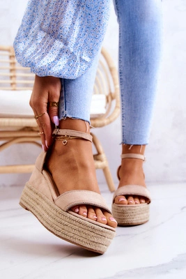 Zamszowe Sandałki Na Koturnie Beżowe Louisiana