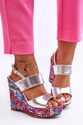 +4Damskie Sandałki Na Koturnie Srebrne Calderia