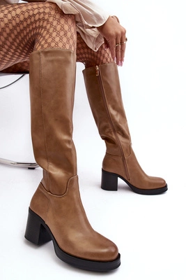 Damskie Kozaki Ocieplane Na Słupku Ciemnobeżowe Theisen