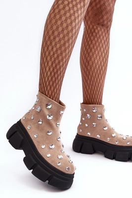 Zamszowe Ocieplane Botki Z Kryształkami D&A MR870-83 Beżowe