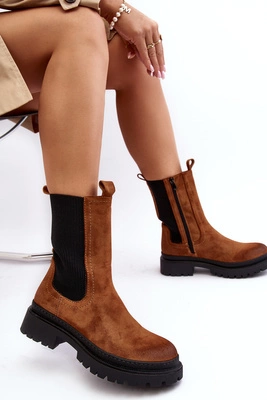 Damskie Botki Sztyblety Na Suwak Camel Samil