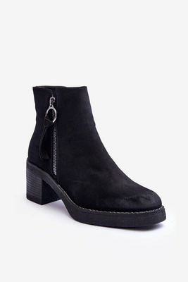Zamszowe Klasyczne Botki Damskie Czarne Limoso