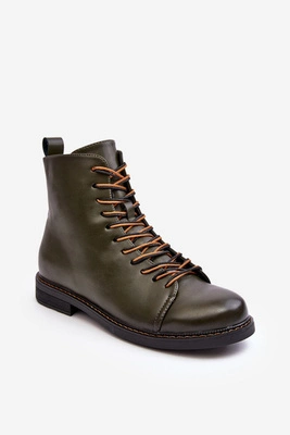 Skórzane Botki Trzewiki Damskie Zielone Ethel