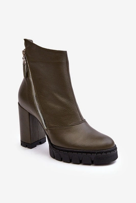 Modne Skórzane Botki Na Obcasie Laura Messi 2509 Ciemnozielone