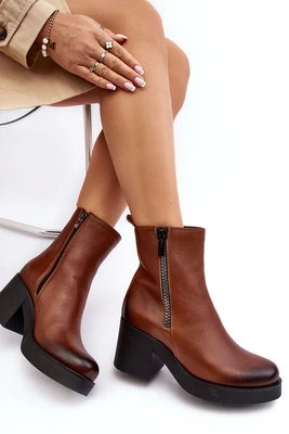 Botki Skórzane Na Masywnym Obcasie Z Suwakami Brązowe Lemar Littosa