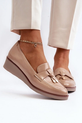 Damskie Lakierowane Półbuty Na Koturnie Z Ozdobą Beżowe Miliret