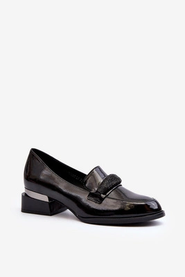 Damskie Półbuty Lakierowane Na Niskim Obcasie Czarne Marilni