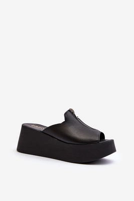 Zazoo 2916 Damskie Klapki Na Masywnej Platformie Z Suwakiem Czarne