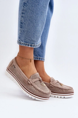 Damskie Ażurowe Mokasyny Beżowe Twista