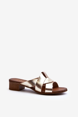 Zazoo 40236 Skórzane Klapki Damskie Na Niskim Obcasie Złote