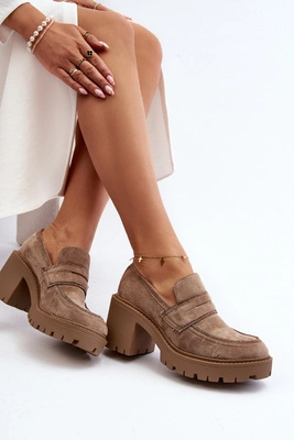 Damskie Półbuty Na Masywnym Obcasie Khaki Feneli