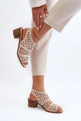 Ażurowe Sandały Na Obcasie Beżowe Serapina