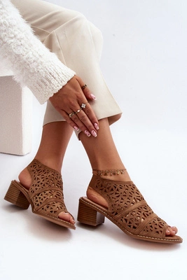 Ażurowe Sandały Na Obcasie Brązowe Serapina