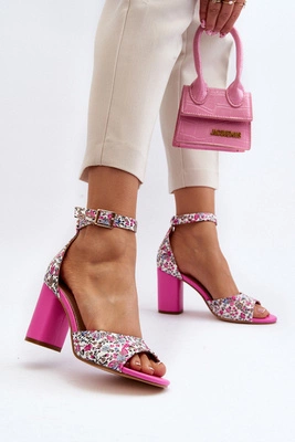 Sandały Na Słupku W Kwiaty Fuksja Vitamella