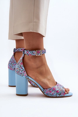 Sandały Na Słupku W Kwiaty Niebieskie Vitamella