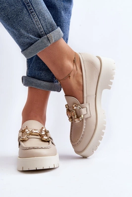 Damskie Skórzane Mokasyny Z Ozdobą CheBello 4369 Beżowe