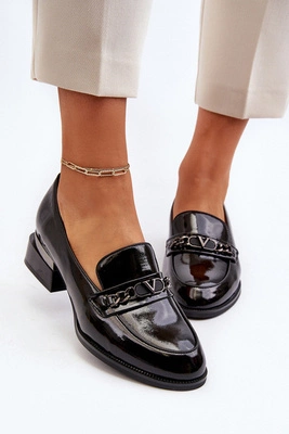 Damskie Lakierowane Półbuty Na Niskim Obcasie Czarne Albreide