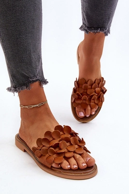 Zazoo 40381 Damskie Skórzane Klapki Na Płaskim Obcasie Brązowe
