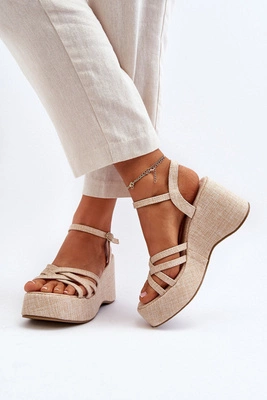 Sandały Na Platformie I Koturnie Jasnobeżowe Oporia