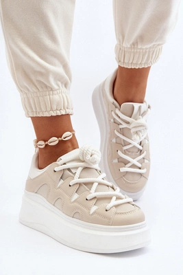 Damskie Sneakersy Z Grubym Sznurowaniem Beżowe Vinali