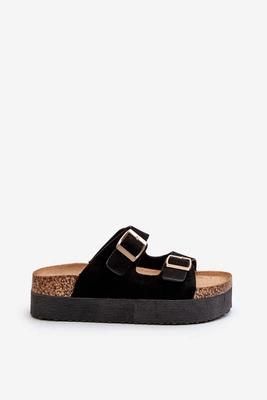 Damskie Klapki Na Platformie Z Klamrami Czarne Lolpey