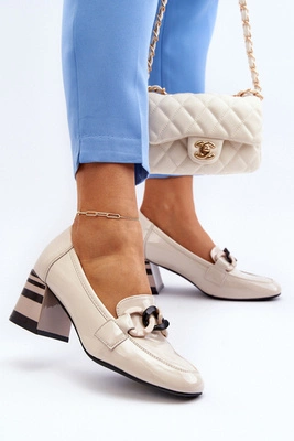 Czółenka Lakierowane Z Łańcuchem Beżowe Paliotte