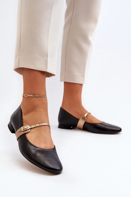Skórzane Baleriny Damskie Na Płaskim Obcasie Laura Messi 2774 Czarne
