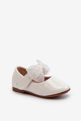 Lakierowane Balerinki Dziecięce Na Rzep Z Kokardą Białe Olessa