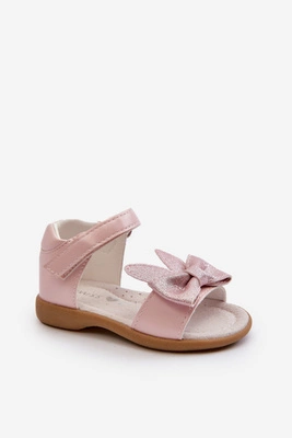 Dziecięce Sandałki Z Kokardą Zapinane Na Rzep Różowe Wistala