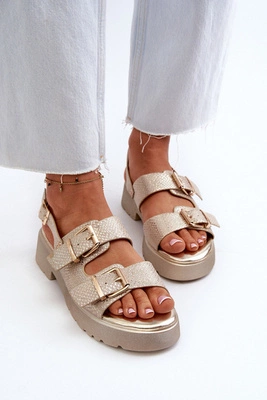 Sandały Damskie Z Klamrami Eko Skórzane Złote Konanttia