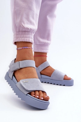 Damskie Zamszowe Sandały Na Platformie Big Star NN274706 Niebieskie