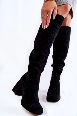 Zamszowe Wysokie Botki Na Obcasie Laura Messi 2527 Czarne
