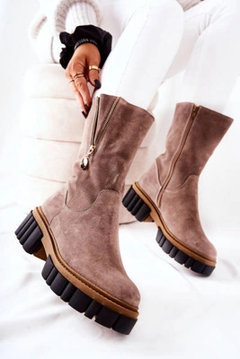 Damskie Skórzane Kozaki Lewski Cappuccino Zamszowe 2866