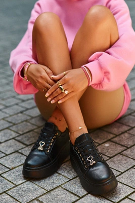 Damskie Skórzane Sneakersy Na Platformie Czarne Vinceza 66700