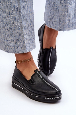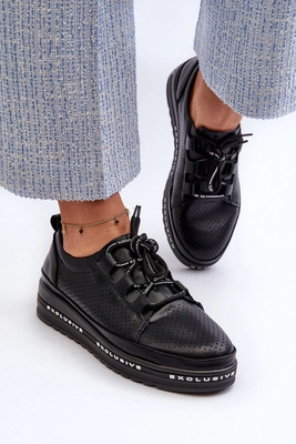 Skórzane Półbuty Damskie Na Platformie S.Barski LR769A Czarne