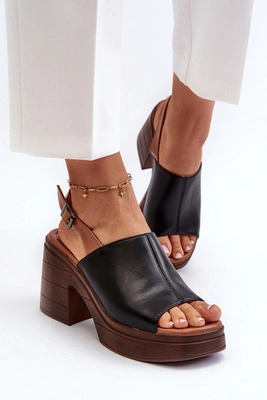 Sandały Damskie Na Obcasie Z Eko Skóry Czarne Horissa