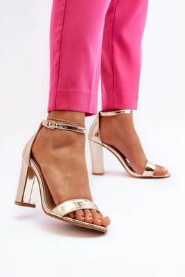 Sandały Damskie Na Obcasie Klocku Złote Irivana