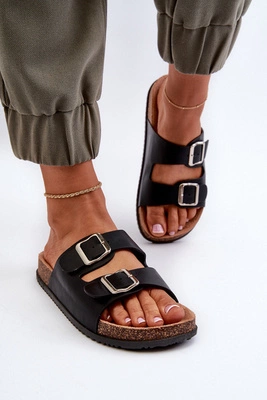 Klapki Damskie Z Klamrami Czarne Oliena