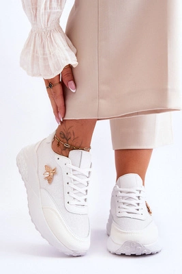 Klasyczne Buty Sportowe Biało-Złote Follow Me