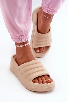 Lekkie Piankowe Klapki Damskie Na Koturnie I Platformie Beżowe Tendrea