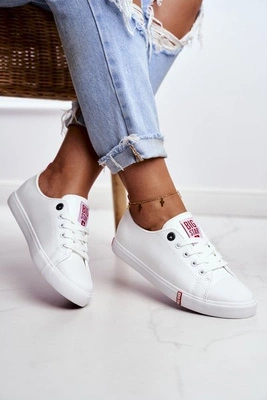 Damskie Skórzane Trampki Big Star GG274005 Biało-Czerwone