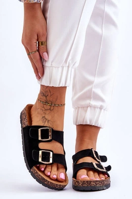 Damskie Klapki Wsuwane Na Korkowej Podeszwie Czarne Cortina