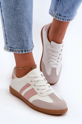 Damskie Niskie Eko Skórzane Sneakersy Biało-Różowe Relialia