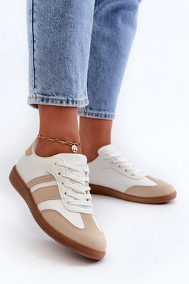 Damskie Niskie Eko Skórzane Sneakersy Beżowe Dorvalia