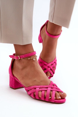 Sandały Damskie Z Eko Zamszu Na Niskim Obcasie Fuksja Monsha