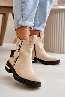 Ocieplane Botki Damskie Z Suwakiem Beżowe Calvaro