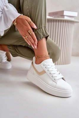 Trampki Sneakersy Damskie Na Platformie Z Eko Skóry Biało-Złote Brennessa