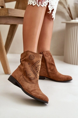 Ażurowe Damskie Niskie Botki Zapinane Na Zamek Brązowe Irinette