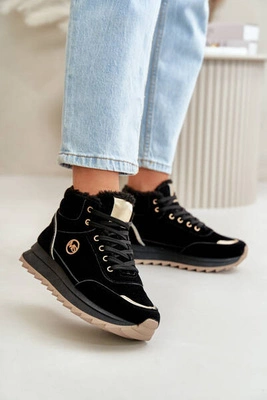 Botki Buty Sportowe Damskie Ocieplane Na Platformie Czarne Ariatte